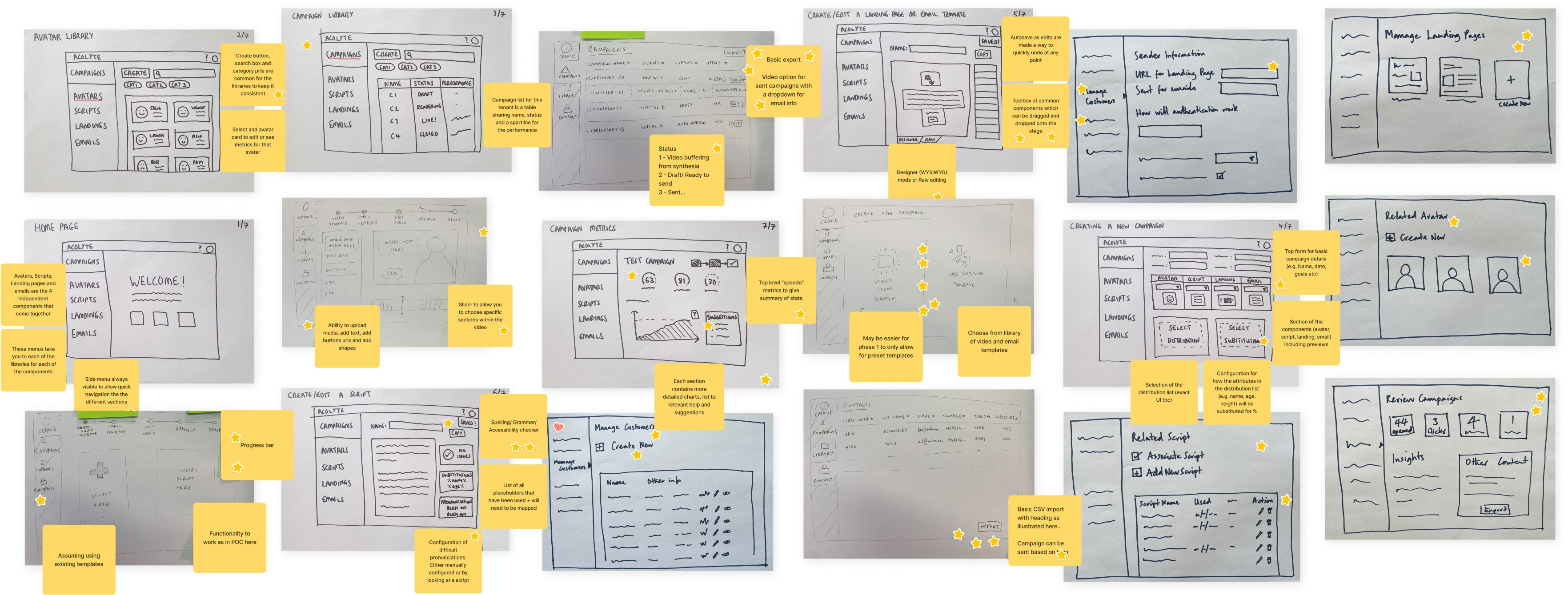 Leveraging the knowledge gained from defining the challenge and exploring potential product solutions, we conducted a multi-phase session of rapid low-fidelity wireframing. With no restrictions on the quantity or quality of ideas, the primary goal was to generate and express diverse concepts. This approach allowed us to discuss specific functional elements and identify potential essential flows that required more attention.