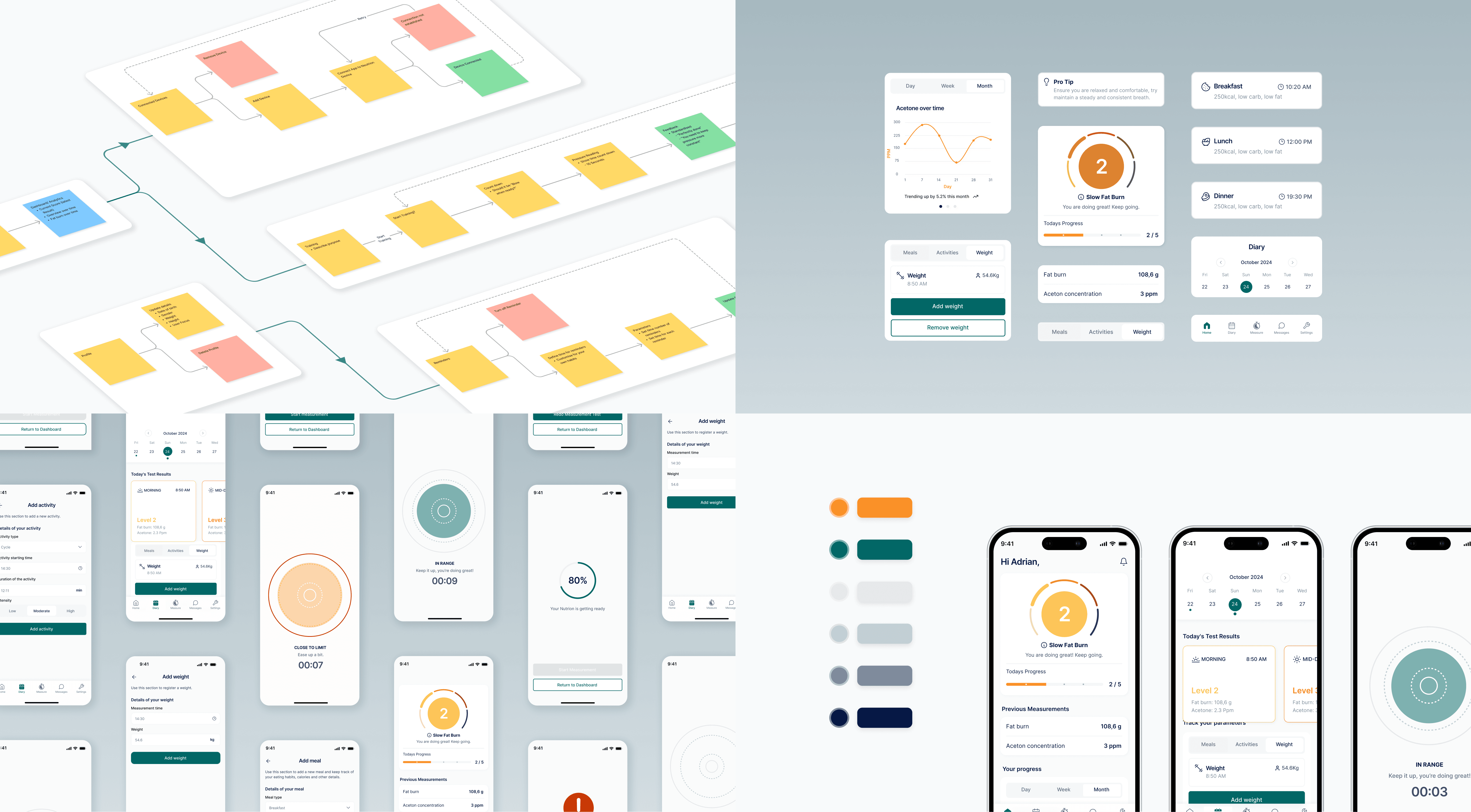 Alivion had a product in the market but it was mostly sold as an industrial product rather than a consumer product. They wanted to to create a new product called the Nutrion. Which needed an app which allowed users to run a metabolic test and track their metrics over time, add entries linked to any foods they may have eaten as all of these have an impact on reading and how to make improvements.