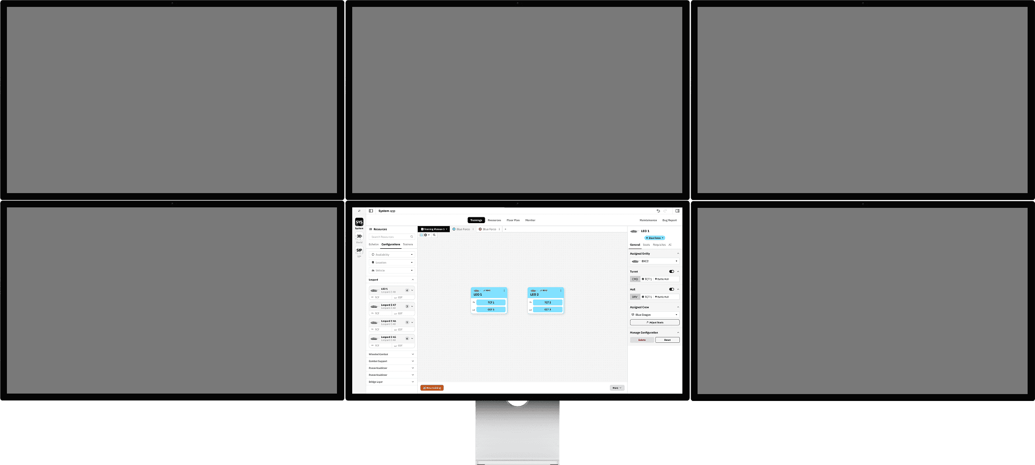 The system app should allow for configurations of these crew members in different vehicles across all the different simulators that the military has to train. This can include up to 7 different simulator type all of which allow for different configurations for training. This is the primary complexity of the system
