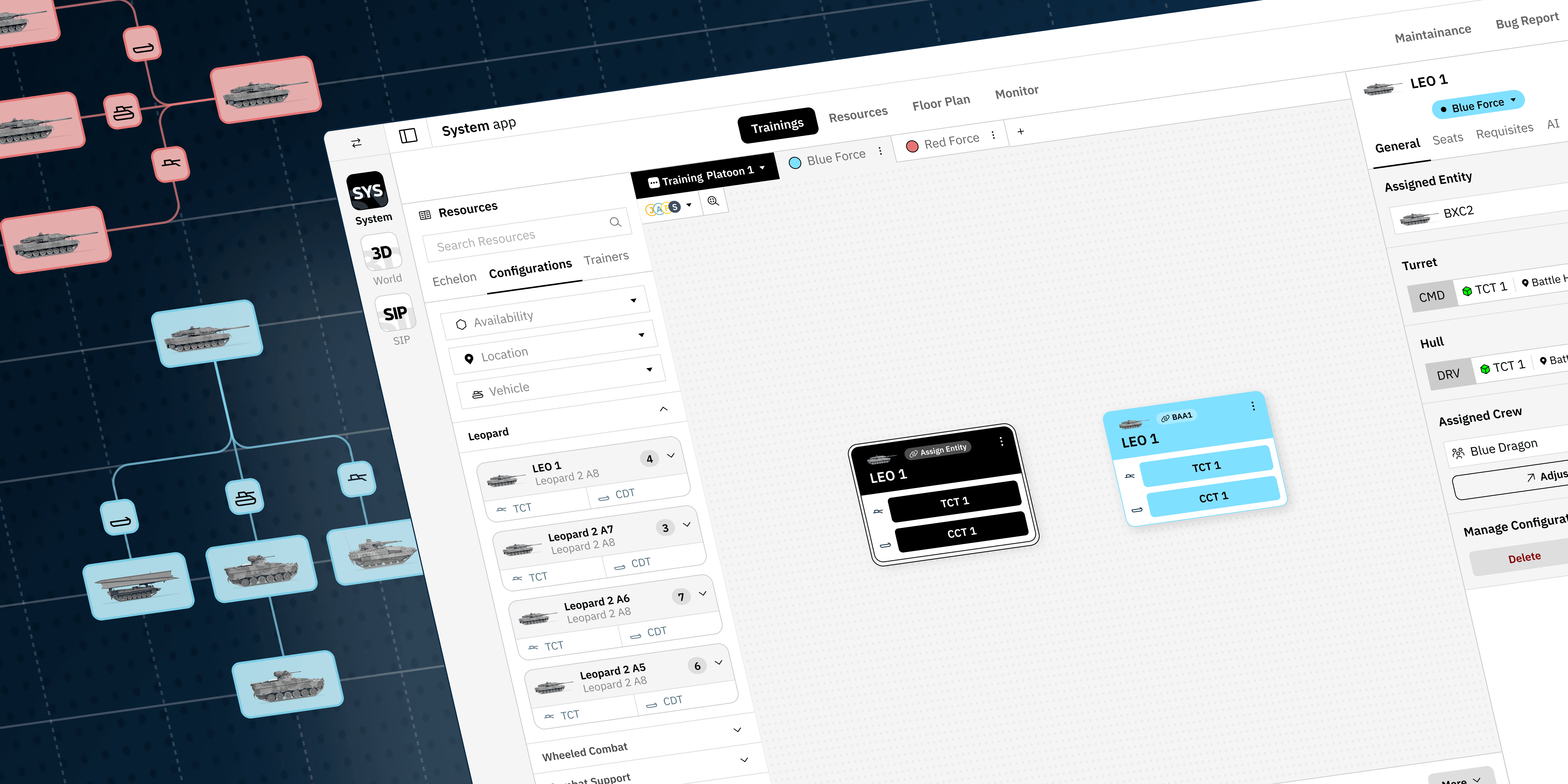 In order for the system to work and allow for all the variability that the system required, we focused on designing a blue print which was modular and flexible enough to accomodate all potential scenarios and vehicles. While it started at a crew level, this entire platform had to be able to scale to allow for platoons, companies and battalions to be created. By creating something that could scale through correct logic and reasoning, we could they account for any potential situations different militaries may require when training.
