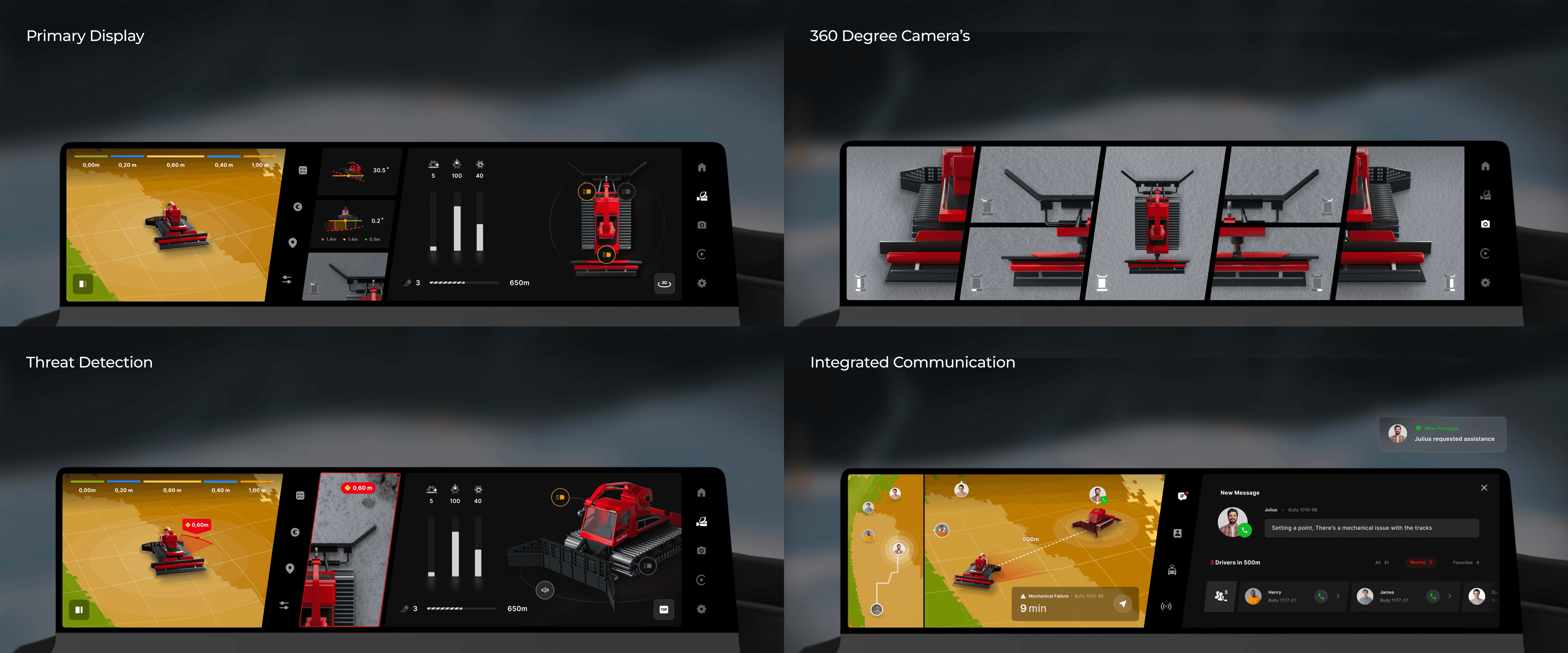 This was a tough project, it had many complexities which we had to try and work through. While it may not look very complicated these snow groomers have a vast array of functions and technical capabilities and while trying to envision what this cabin experience could look like we had to ensure we could create an elevated experience but also ensure that it was as functional as possible. This is the type of project where the more questions we asked the more we realised there were major gaps in what the market currently provide both from a UX and Industrial design perspective/